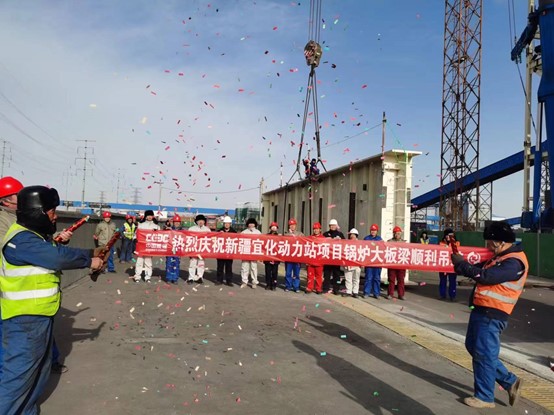 新疆宜化化工項目鍋爐大板梁順利吊裝就位
