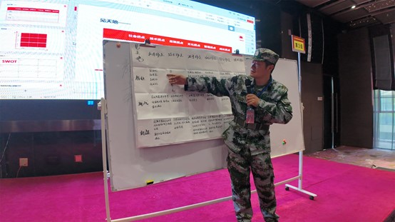 接下來(lái),王克導(dǎo)師結(jié)合分析知名企業(yè)成功案例,提綱挈領(lǐng),拋磚引玉,對(duì)學(xué)員們的認(rèn)知、心智以開悟啟迪,各個(gè)連隊(duì)針對(duì)研討營(yíng)提出的“形勢(shì)研判”“價(jià)值定位”“業(yè)務(wù)鋪排”“模式設(shè)計(jì)”“系統(tǒng)行動(dòng)”“資能配置”“企業(yè)管控”等七大課題通過(guò)研討集思廣益,用心作業(yè),然后形成報(bào)告,進(jìn)行展示,以豐富多彩的形式展開競(jìng)賽。每位學(xué)員在研討中不再墨守成規(guī)、因循守舊,而是放開思路、創(chuàng)新思維,不斷突破自我認(rèn)知邊界,用全新的視角去看待問(wèn)題,解決問(wèn)題,同時(shí)與隊(duì)友密切配合、相互補(bǔ)充,最終依靠團(tuán)隊(duì)的力量,攻克一個(gè)接一個(gè)看似艱巨的課題。每一次研討都是一次思想碰撞,每一次碰撞都伴隨著一次思維重構(gòu)。尤其在文化活動(dòng)——“鷹王重生”環(huán)節(jié),面對(duì)看似不可能完成的任務(wù),大家一次次克服畏難情緒,經(jīng)受住信念、毅力和體能的多重考驗(yàn),即使累得滿頭大汗、胳膊疼麻,也咬牙堅(jiān)持,自我鼓勁,不言放棄,可謂經(jīng)歷了一場(chǎng)身心的洗禮與覺醒。面臨生死抉擇,選擇生,就必須拋舊納新,自我蛻變,經(jīng)歷疼痛;企業(yè)重構(gòu)建歸根結(jié)底始于人的重構(gòu)建,始于個(gè)人的自我打破和蛻變;蛻變是艱難而痛苦的,但只有經(jīng)過(guò)蛻變的陣痛,個(gè)人、團(tuán)隊(duì)乃至企業(yè)才能獲得重生。