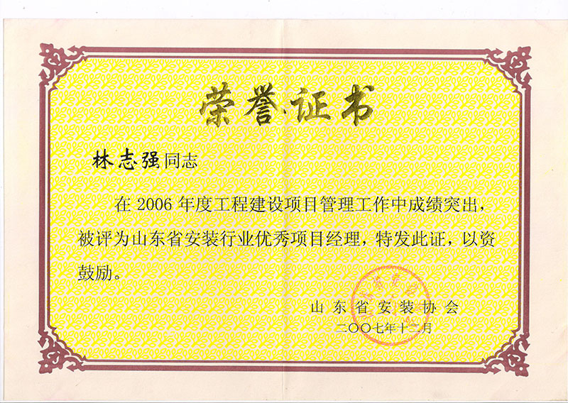 Certificate of honor