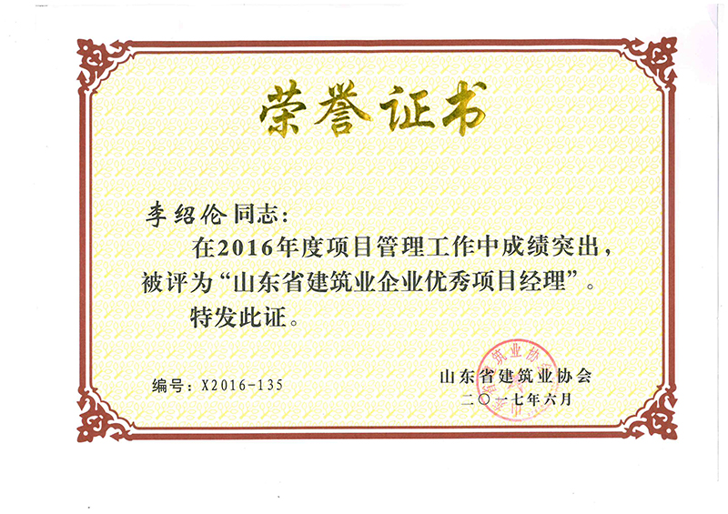 Certificate of honor