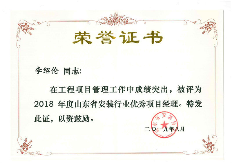 Certificate of honor
