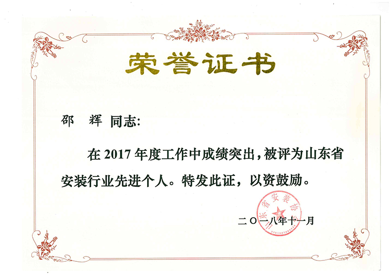 Certificate of honor