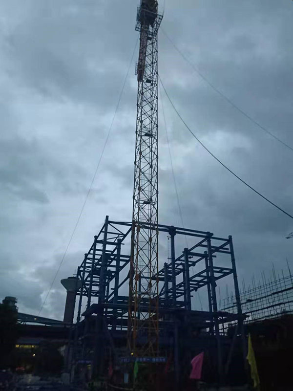 臺風(fēng)來臨前對塔機進行纜風(fēng)繩加固